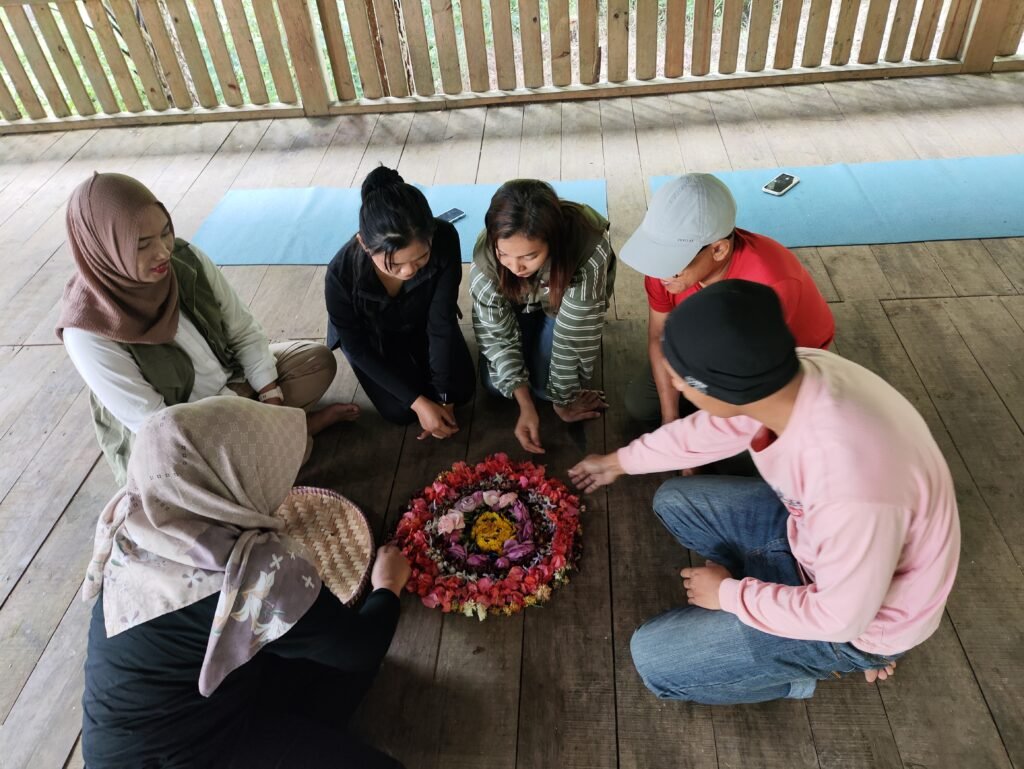 Kami diajak berjalan perlahan di tengah hutan, mendengarkan suara alam, merasakan udara segar, dan benar-benar hadir tanpa distraksi.